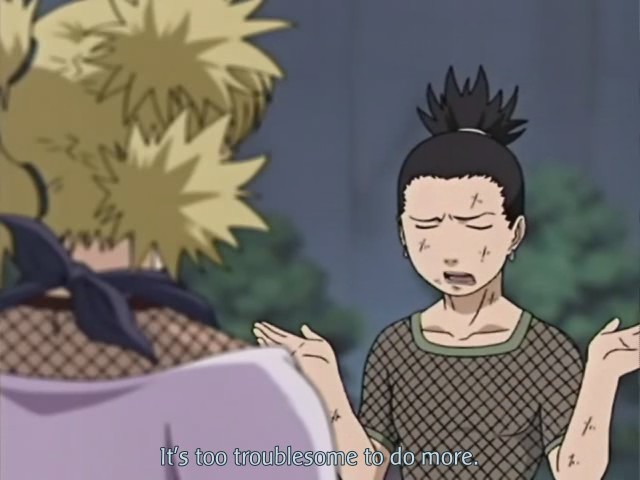| Sherre, нашёл, говориться про то что он служил в АНБУ, получаеться он стал вначале джонином , а потом пошёл в АНБУ....хотя возможно это ляп манги или переводчиков. ----------------------- Вот ляп в моём любимом бое Темари против Шикомару........ Вот Темари повторяет за Шикомару всего движения.... , и тут перестаёт..... и тут показывают сцену, где тени нет обьявляют "Победитель , Темари" - судья... уже в следующей серии при тех же словах "Победитель Темари" она ещё находиться под дейтвием тени...